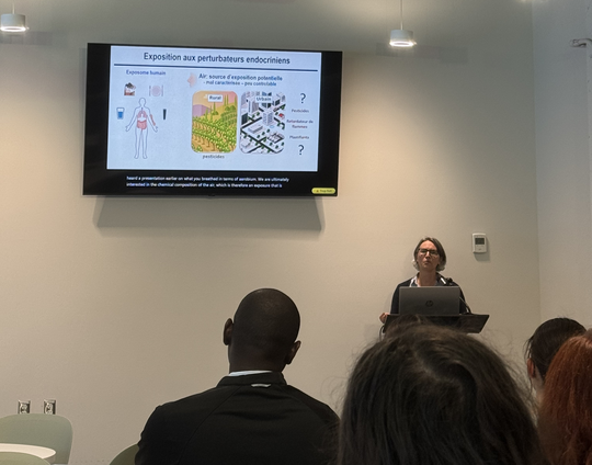 La professeure chercheuse Géraldine Delbès de l’Institut national de la recherche scientifique était la conférencière invitée. Sa grande conférence intitulée « Les Perturbateurs de la fertilité : comprendre, prévenir, agir » a dressé l’état des recherches sur les facteurs environnementaux, particulièrement les composés chimiques d’origine organiques dans l’air, mais également dans notre alimentation et les autres expositions. Elle a également mis l’emphase sur l’importance des premières étapes de développement de l’individu, dont l’environnement intra-utérin et l’étude de l’épigénétique.