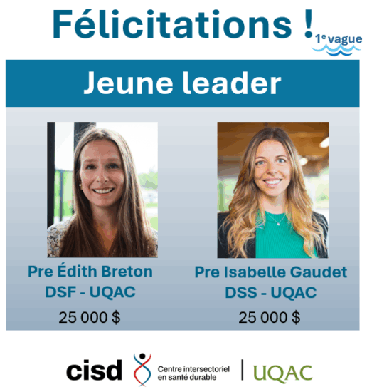 C’est également avec plaisir que les membres scientifiques et les partenaires citoyens ont attribué une subvention de 25 000 $ aux Jeunes leaders suivantes: