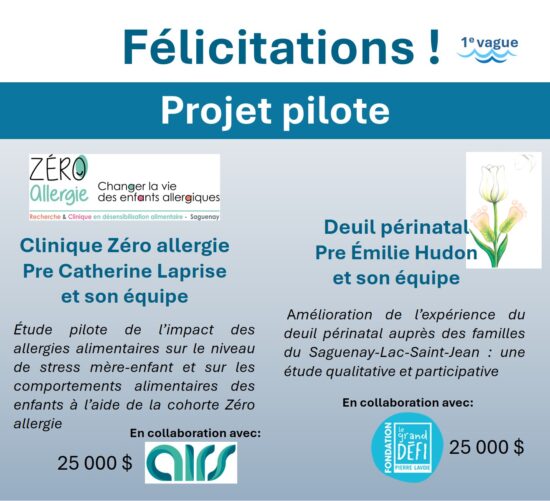 Pre Émilie Hudon et son équipe, projet intitulé : Amélioration de l’expérience du deuil périnatal auprès des familles du Saguenay-Lac-Saint-Jean: une étude qualitative et participative